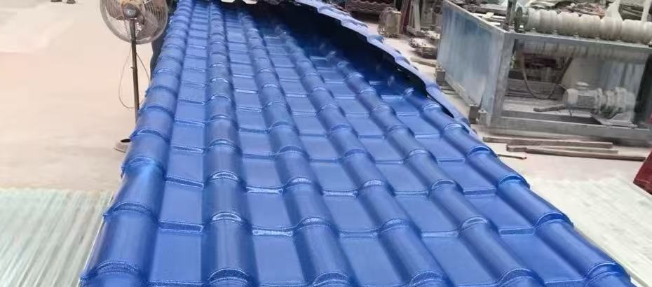 蓝色合成树脂瓦图片展示880型或1050型,波长为220mm/250mm